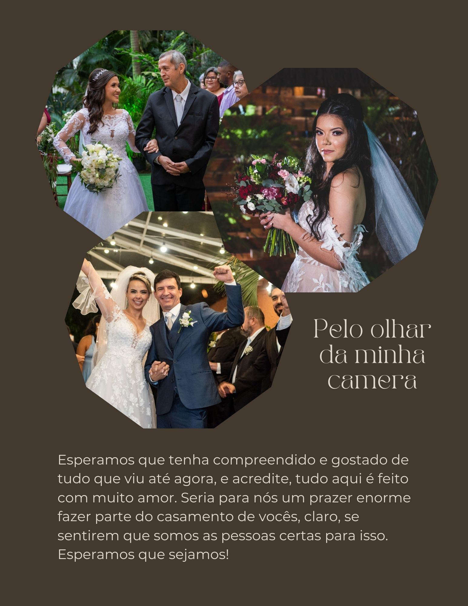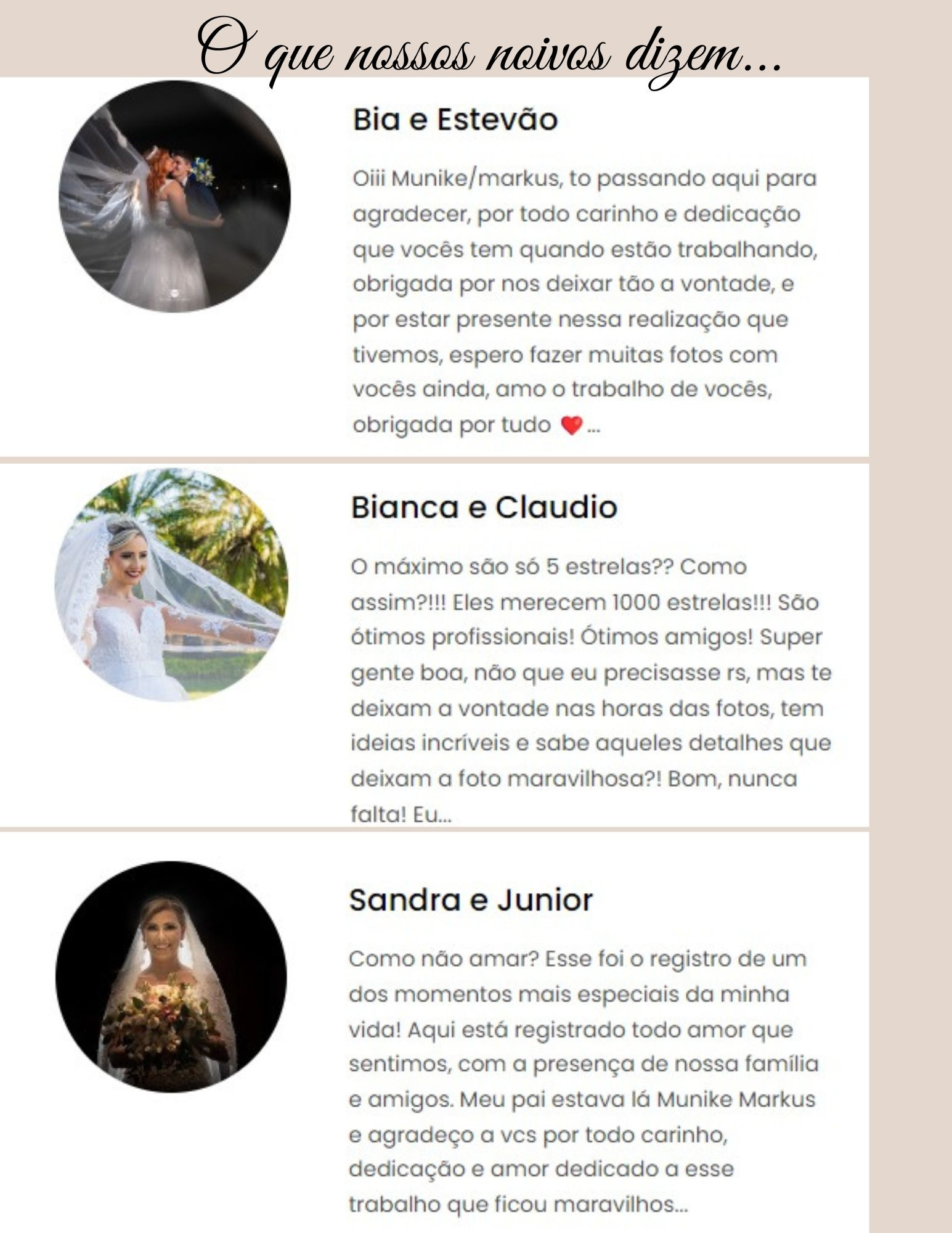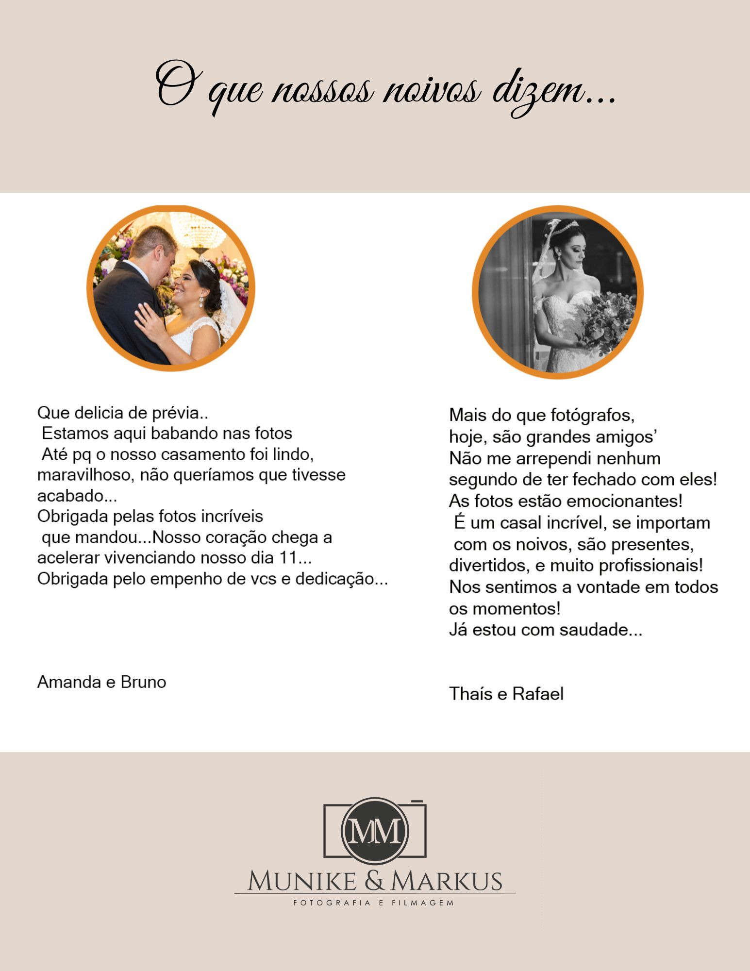 Nossos clientes quando nos procuram, não estão atrás apenas de uma fotografia, mas sim em buscar o melhor para o grande dia da vida de sonhos deles e lá se vão 15 anos com mais de 500 casamentos onde conquistamos não apenas clientes satisfeitos, mas amigos para todo sempre.
