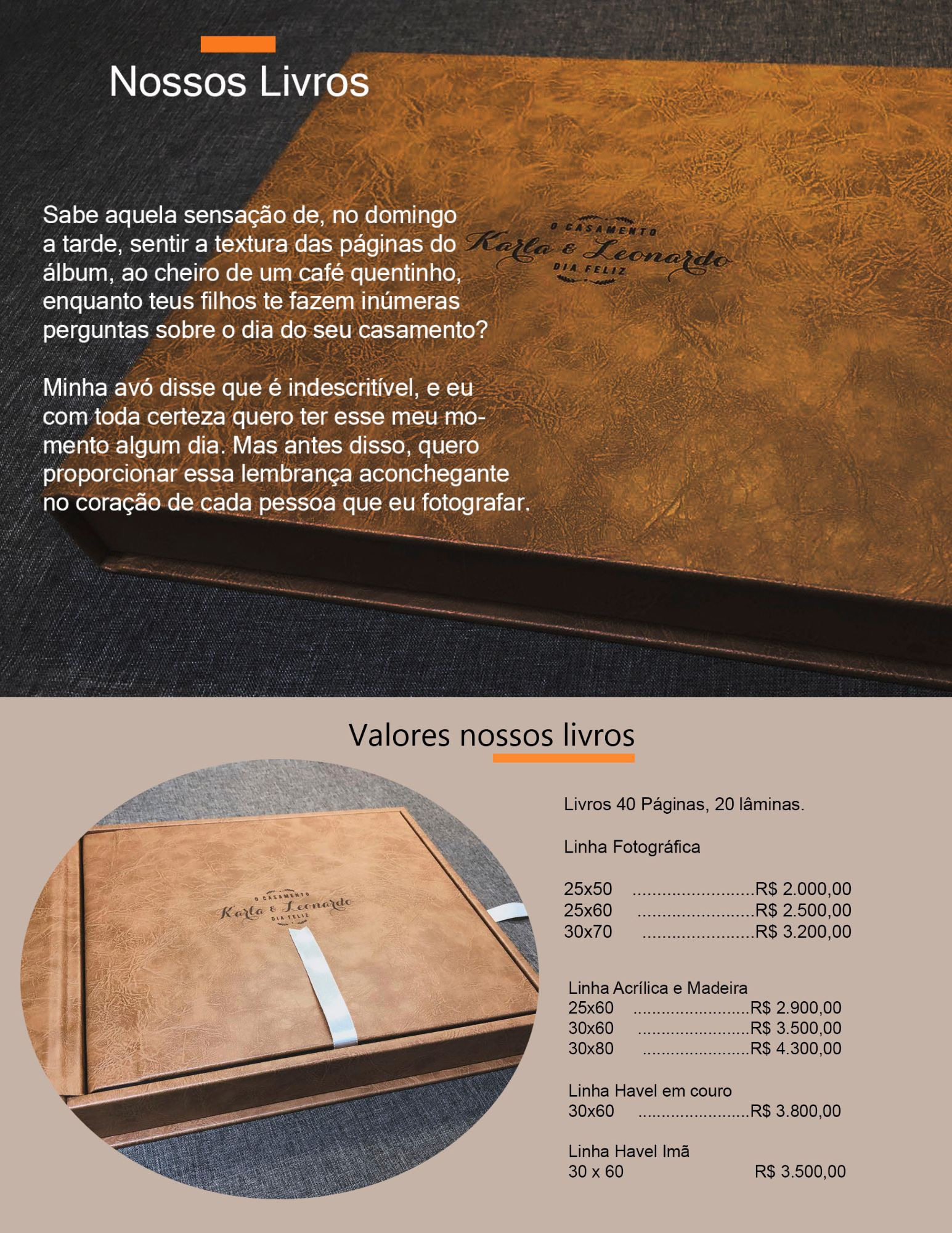 E um lindo álbum luxo 30x60 diagramado, lâminado e panorâmico.